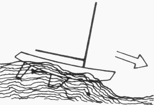 Rápido movimento lateral como o mar de través. O deslizamento lateral associado a um forte balanço pode conduzir a um emborcamento.
