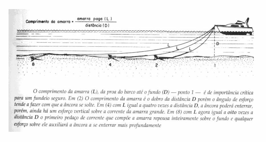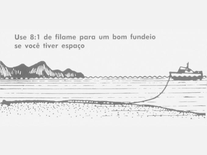 Imaginemos que fundeamos em 3 metros de água e pagamos 18 metros de AMARRA, ou seja, uma relação bastante razoável de 6:1 (18/3).